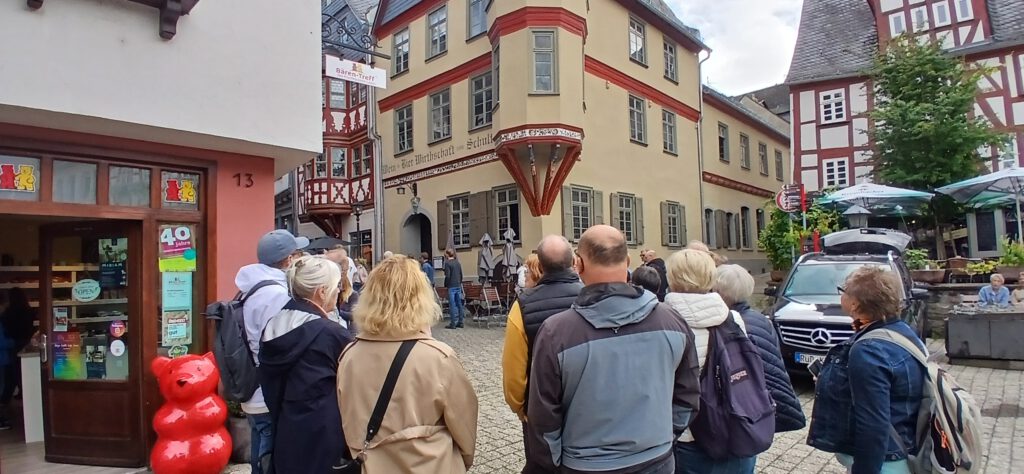 Der Bus startete pünktlich um 8:30 Uhr in Dietzenbach und nach Ankunft in Limburg teilte sich die Gruppe in 2 Teile um an einer Stadtführung teilzunehmen. Eine Stadtführung fand unter dem Titel „Gruselführung“ statt, die andere hatte einen ähnlichen Titel. Wir tauchten bei der professionellen Führung in die Geschichte der Domstadt ein und schlenderten durch die verwinkelten Gässchen, vorbei an beeindruckenden Fachwerkhäusern und natürlich zum imposanten Limburger Dom. Da in dieser Woche „Kreuzwoche“ war, ist der Dom nur beschränkt zugänglich gewesen. Dafür war der Bischofssitz geöffnet, sodass man sich die „goldenen Wasserhähne“ des Bischofs ansehen konnte. Ich habe allerdings keine goldenen Wasserhähne gesehen.