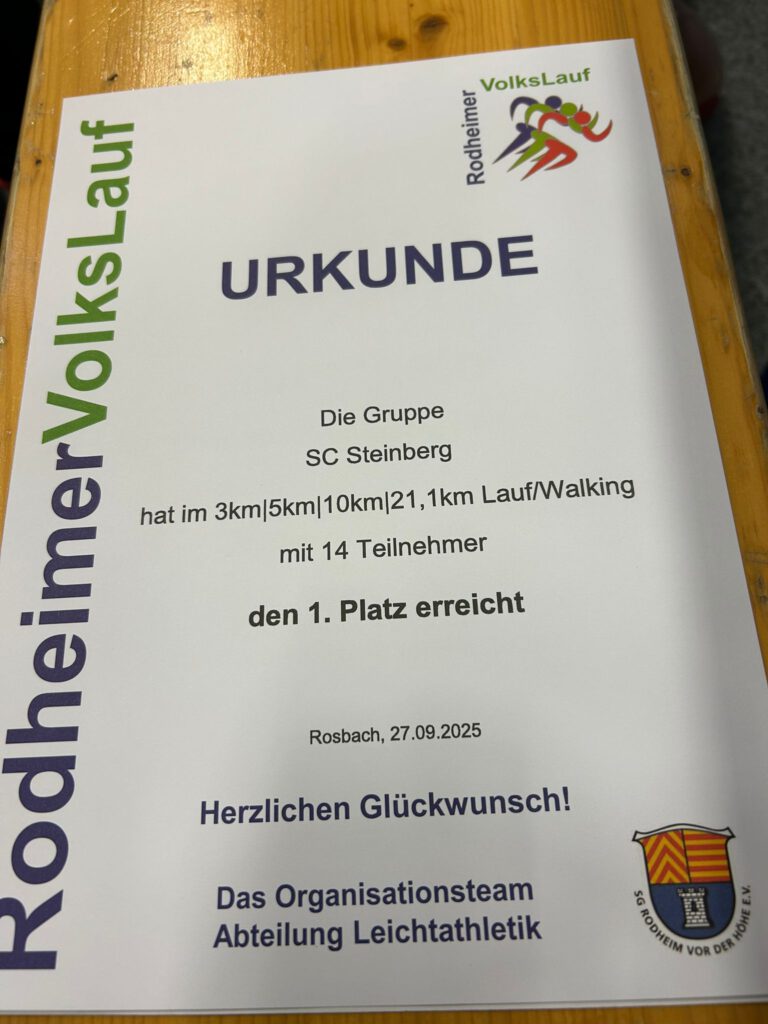 Beim 10-km-Lauf waren 14 Läufer vom SC Steinberg am Start. Auch hier waren wir sehr erfolgreich mit Miriam als 1. in ihrer Altersklasse, Tobias wurde 1., Michael wurde 2. und Jacqueline, Florian und Aaron verfehlten mit dem 4. Platz das Treppchen nur knapp.