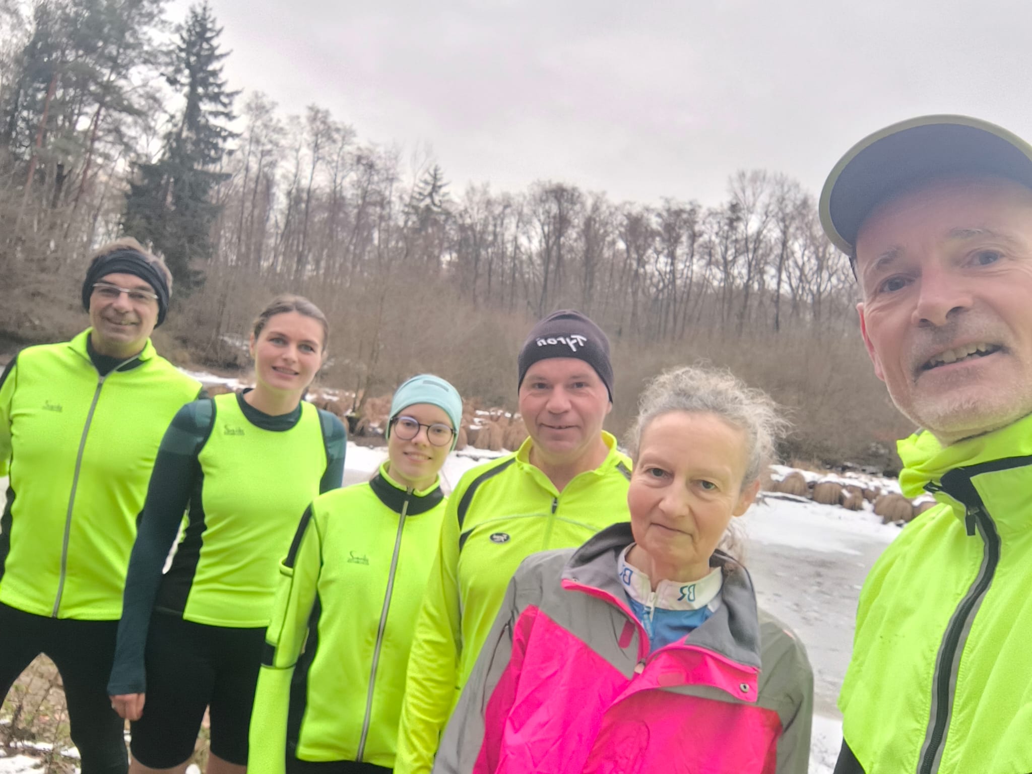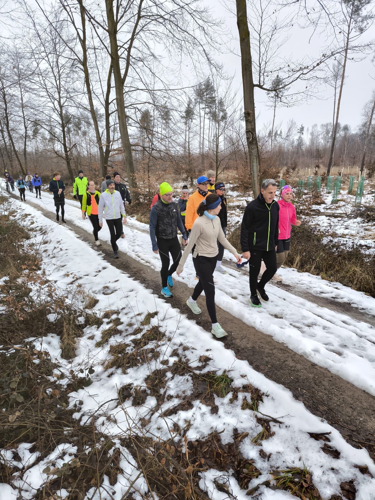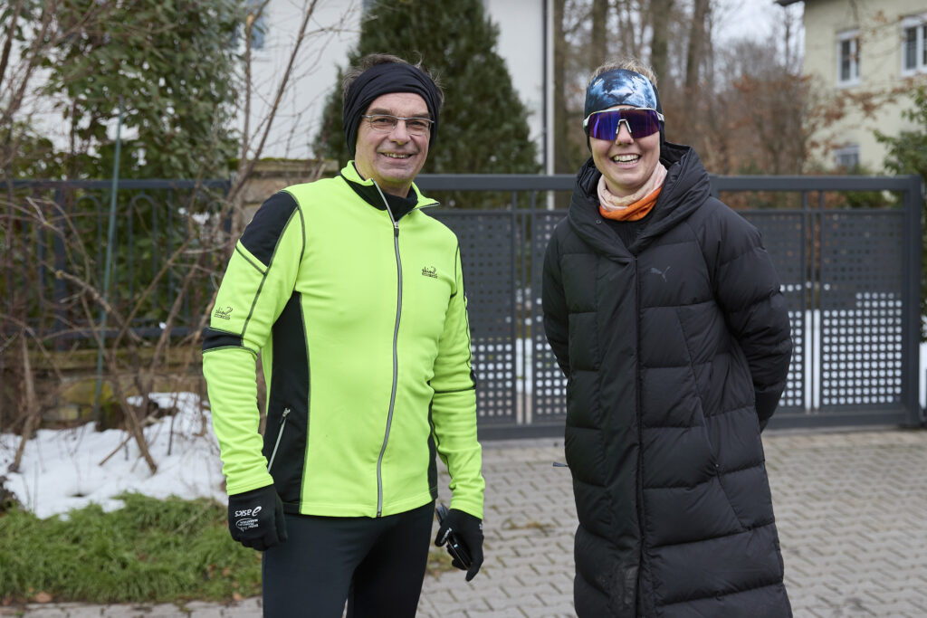 Am nächsten Morgen war dann Treffpunkt in der Tannenstraße für den 246. Marathon. Weil Sonntag war, hatten wohl sehr viele aus der Region und von weiter weg Lust und Zeit Joyce zu begleiten. Auch 7 Tapfere vom SC Steinberg waren dabei. Als Joyce und ihr Partner pünktlich um 9:00 Uhr eintrafen, waren sie von der Resonanz sichtlich überrascht. Ihr Partner, den sie kokettierend stets als Praktikant bezeichnet, übernahm etwas apathisch die Einweisung des Teilnehmerkreises. Auch wenn Joyce die Anwesenheit unseres Bürgermeisters wenig Bedeutung schenkte, übernahm er souverän die Begrüßung und die Verabschiedung der Läufer.