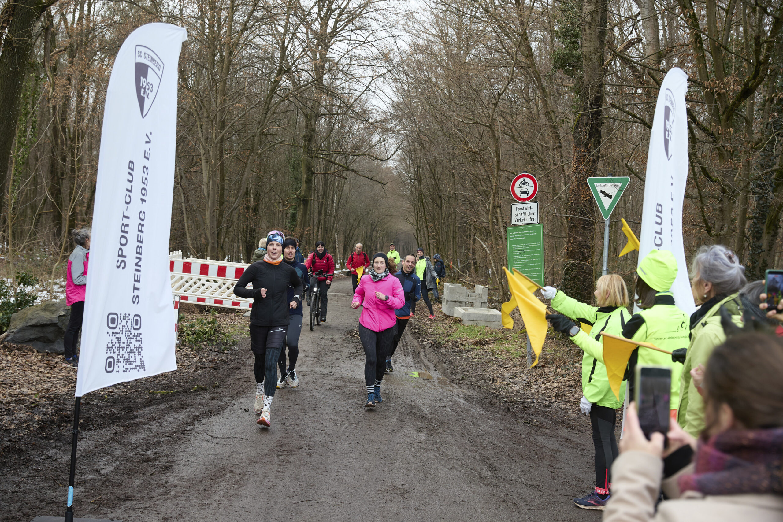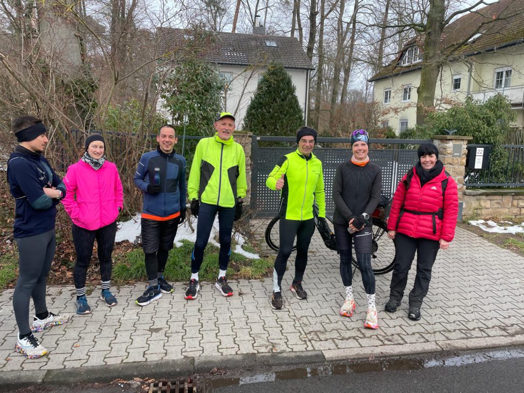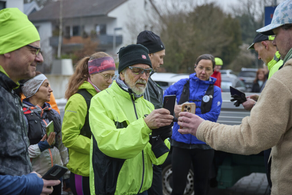 Um dieses Ultra-Laufevent ein klein wenig zu begleiten, haben wir beschlossen, den Lauftreff an diesem Tag ans Ende der Tannenstraße zu verlegen und einen Zieleinlauf aufzubauen mit Pavillon und Verpflegung. Jeder Zuschauer bekam ein Fähnchen in die Hand, um damit zum Zieleinlauf zu winken.