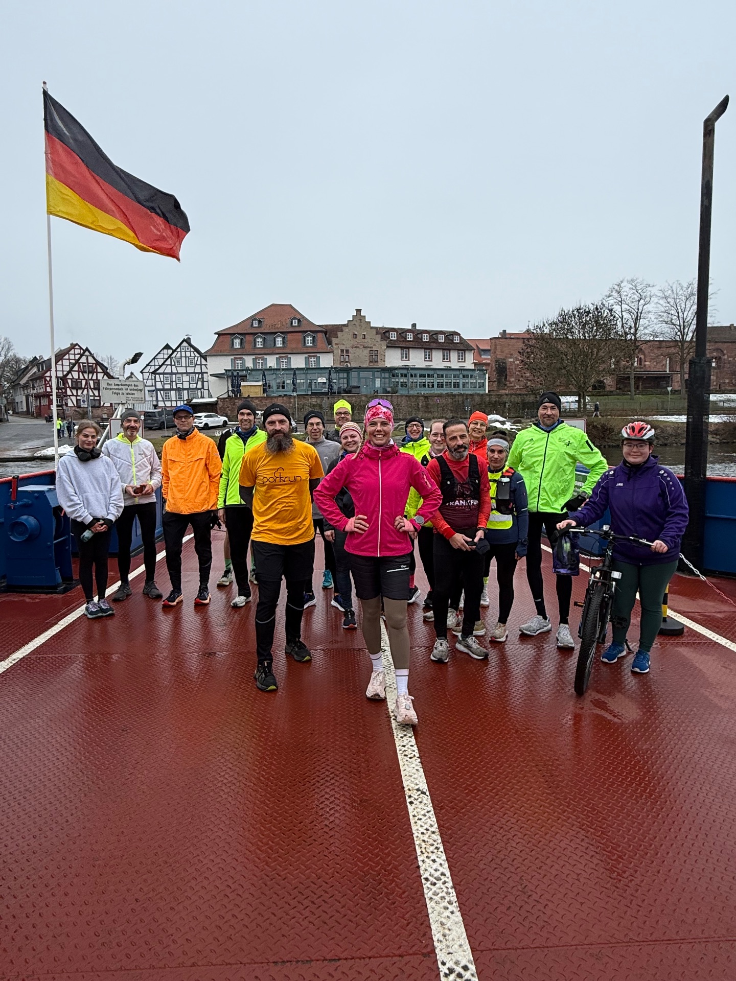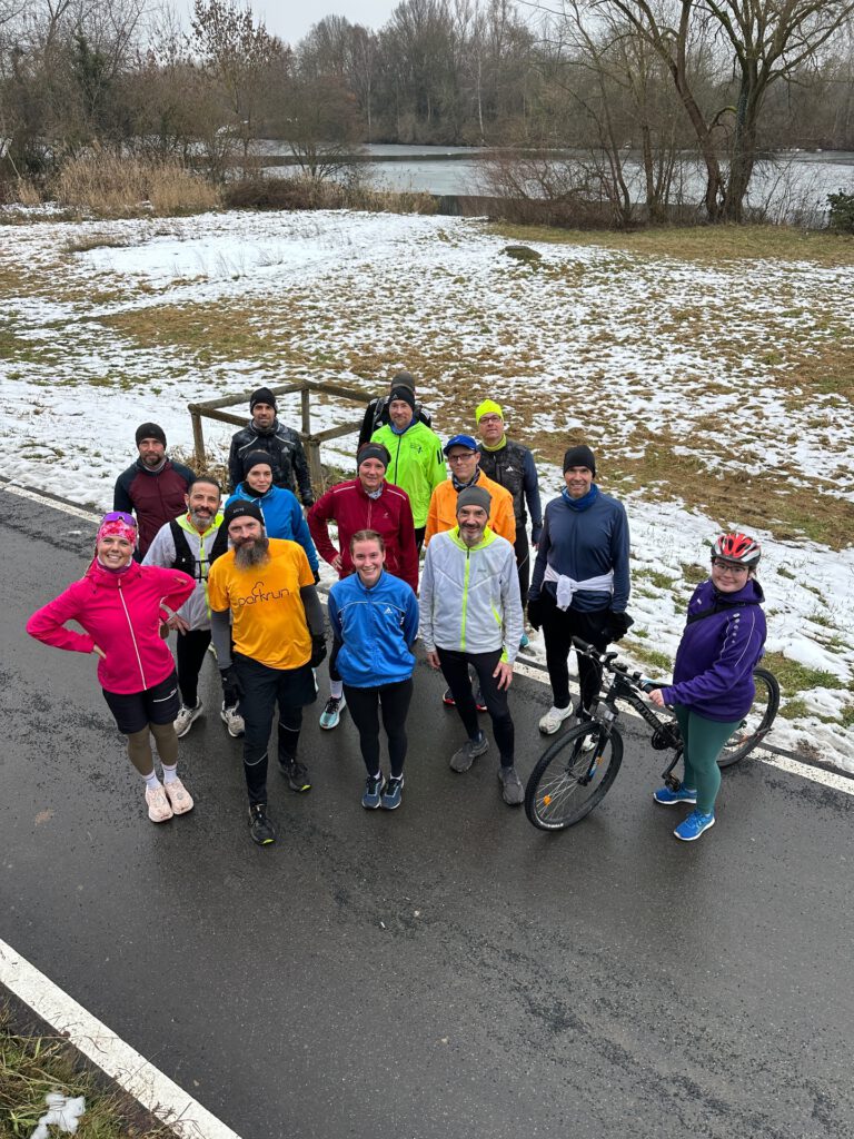 Die Walker sind an diesem Tag schon früher gestartet und waren von ihrer Runde schon zurück, die Läufer, die Joyce entgegenlaufen wollten, sind um 13:30 gestartet und haben sie in Neu-Isenburg getroffen, wo Dieter sein Schlüsselerlebnis hatte, das er wohl so schnell nicht wieder vergisst. Die ganze Gruppe ist dann durch die B 459 getrennt worden, Joyce ist weitergelaufen und der Rest musste auf eine freie Fahrbahn warten und ist dann direkt zum Zieleinlauf weitergelaufen.