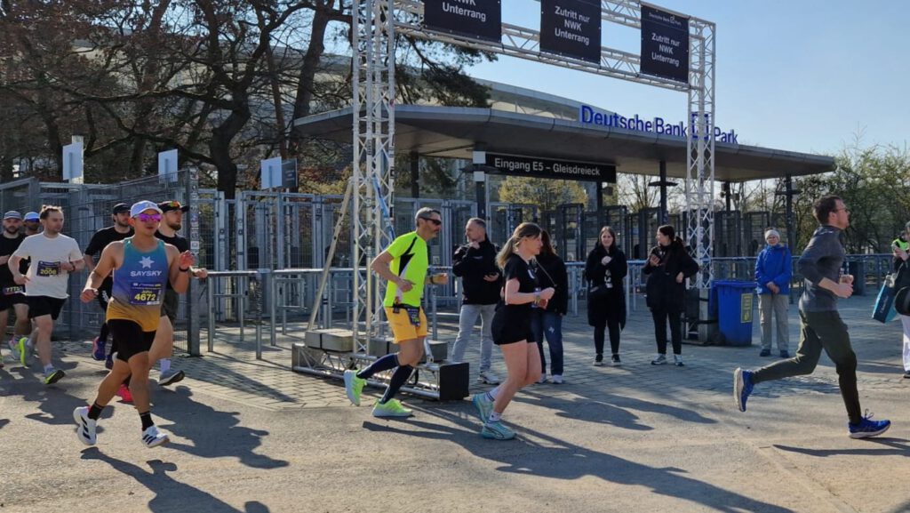 Der Zieleinlauf war dann wieder im Stadion, wo die letzten Meter um den „heiligen Rasen“ der Eintracht führten.