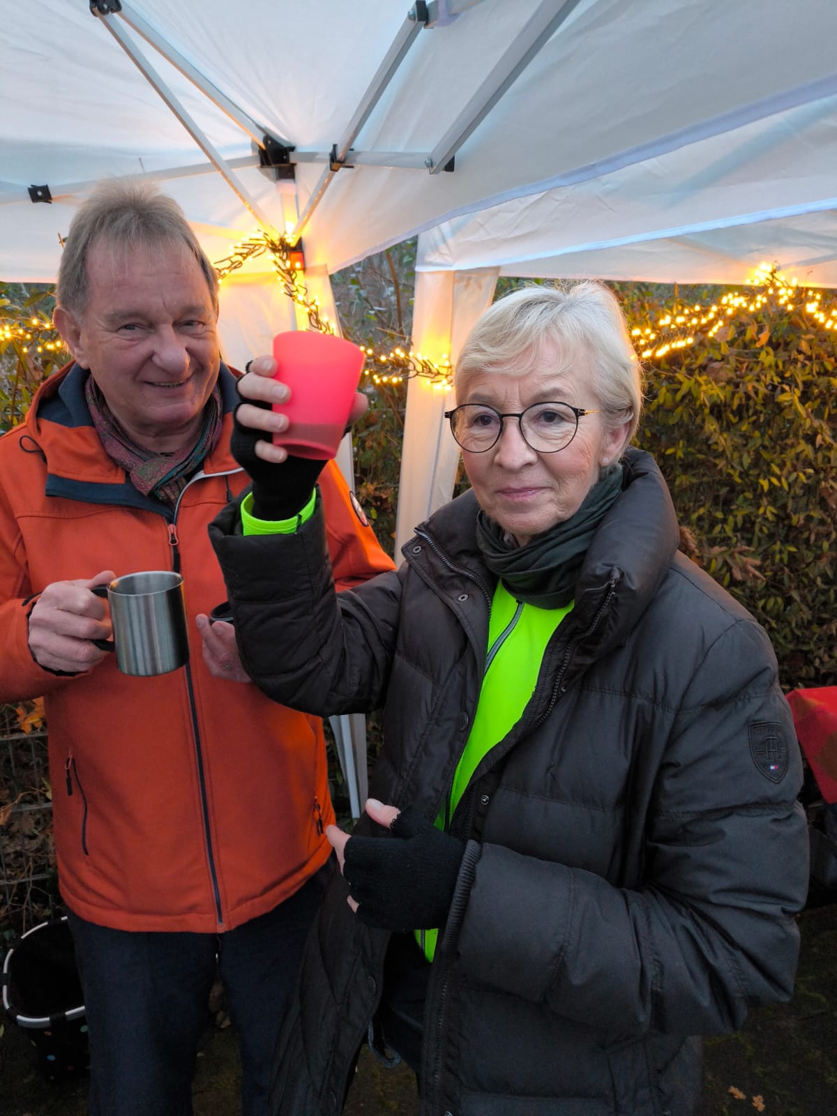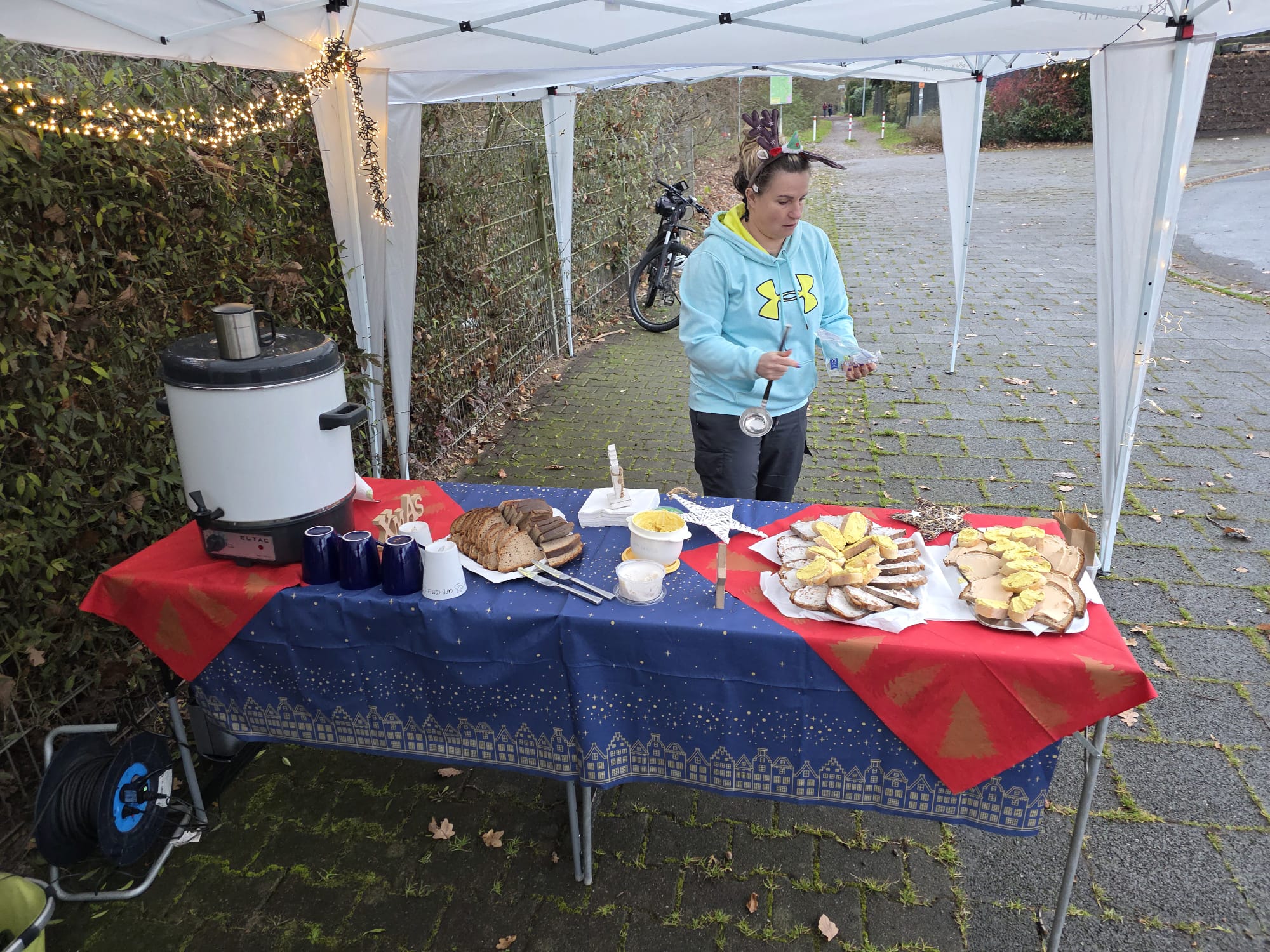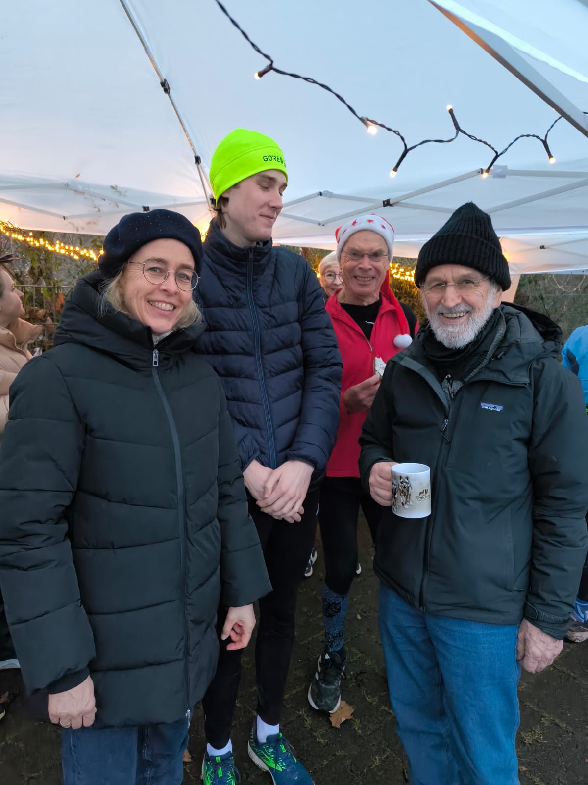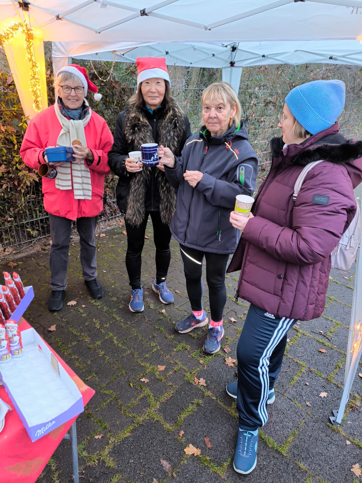 Im Anschluss an den sportlichen Teil wurde am Lauftreff-Treffpunkt (Wendehammer Heinrich-Mann-Schule) gefeiert. Unter Pavillons herrlich angerichtet, erwartete die Sportler ein Buffet mit Glühwein, Tee, Bauernbrot mit leckeren Aufstrichen und Weihnachtsgebäck. Jeder Teilnehmer bekam auch einen Schokoladen-Nikolaus geschenkt.