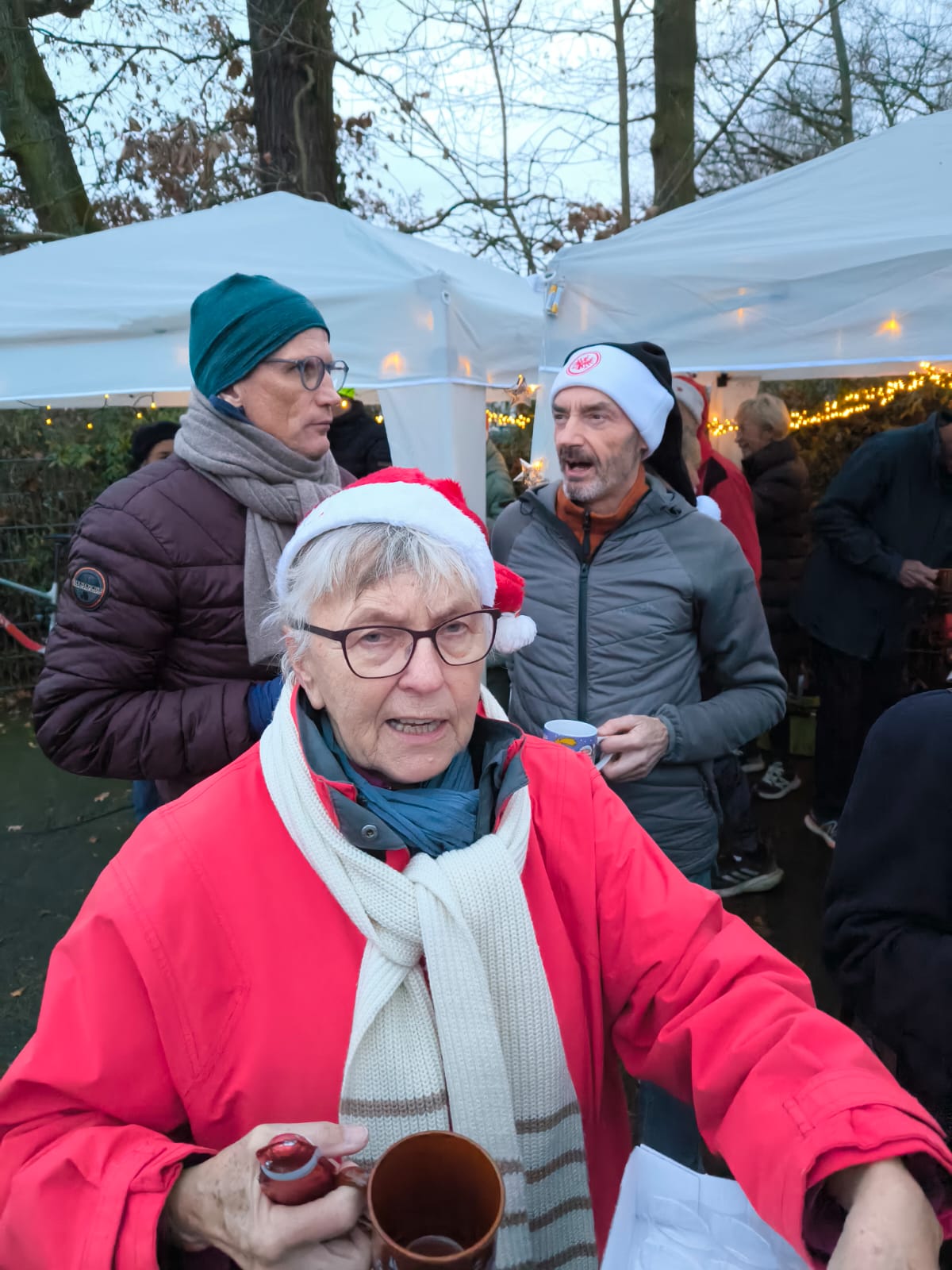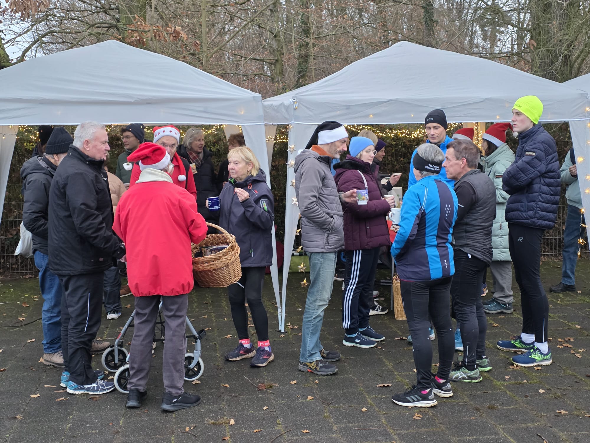 Die Einladung fand erfreulicherweise regen Zuspruch. Zuerst wurde wie immer in mehreren Gruppen eine Stunde durch den Steinberger Wald gelaufen bzw. gewalkt. Allerdings war bei einigen Sportlern schon anhand der roten Nikolausmützen erkennbar, dass dies kein gewöhnlicher Lauftreff war.